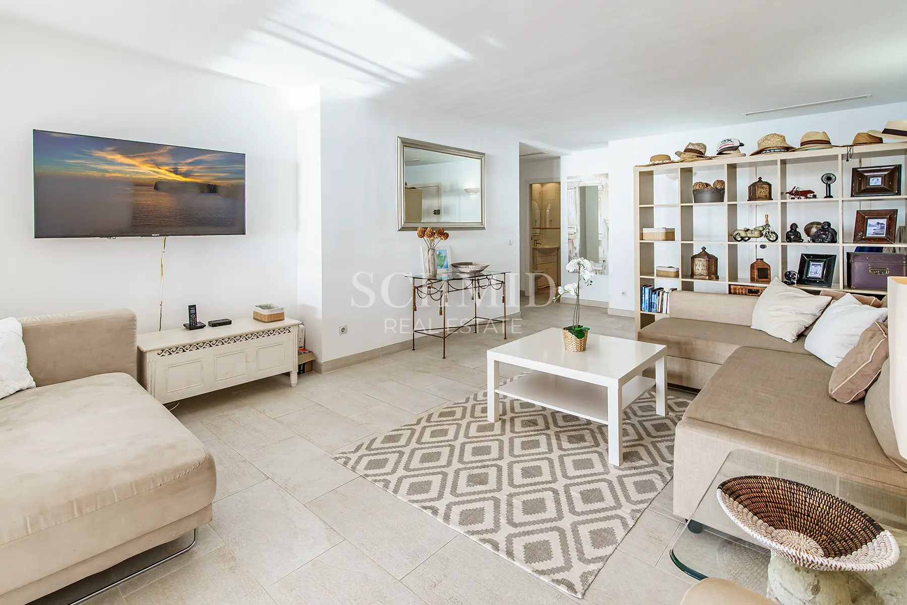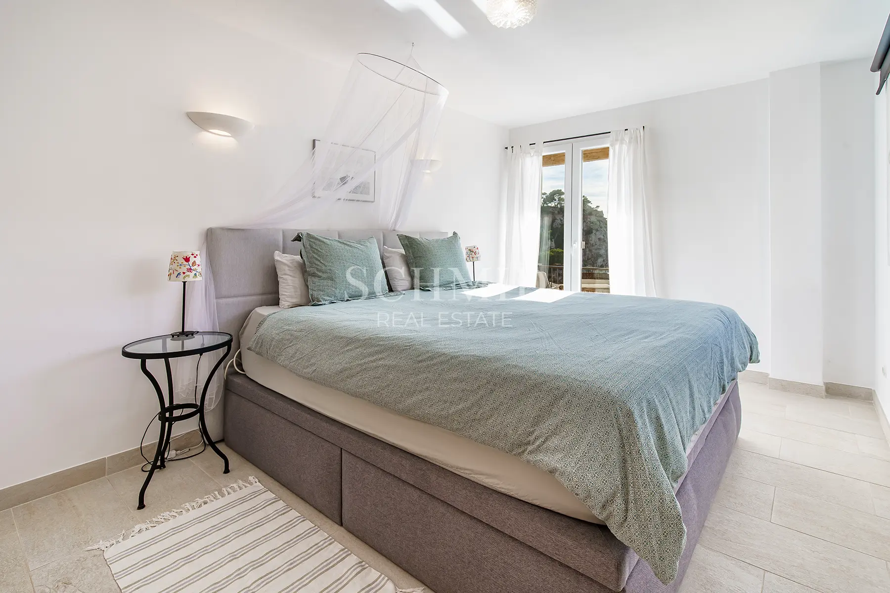 Die Wohnung verfügt über insgesamt drei Schlafzimmer, von denen zwei direkten Zugang zur Terrasse haben und mit einem traumhaften Meerblick begeistern. Integrierte Einbauschränke sorgen in allen Räumen für Stauraum. Ergänzt wird das Raumangebot durch zwei separate Badezimmer.