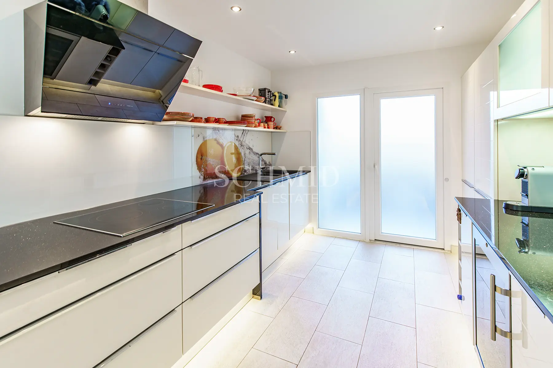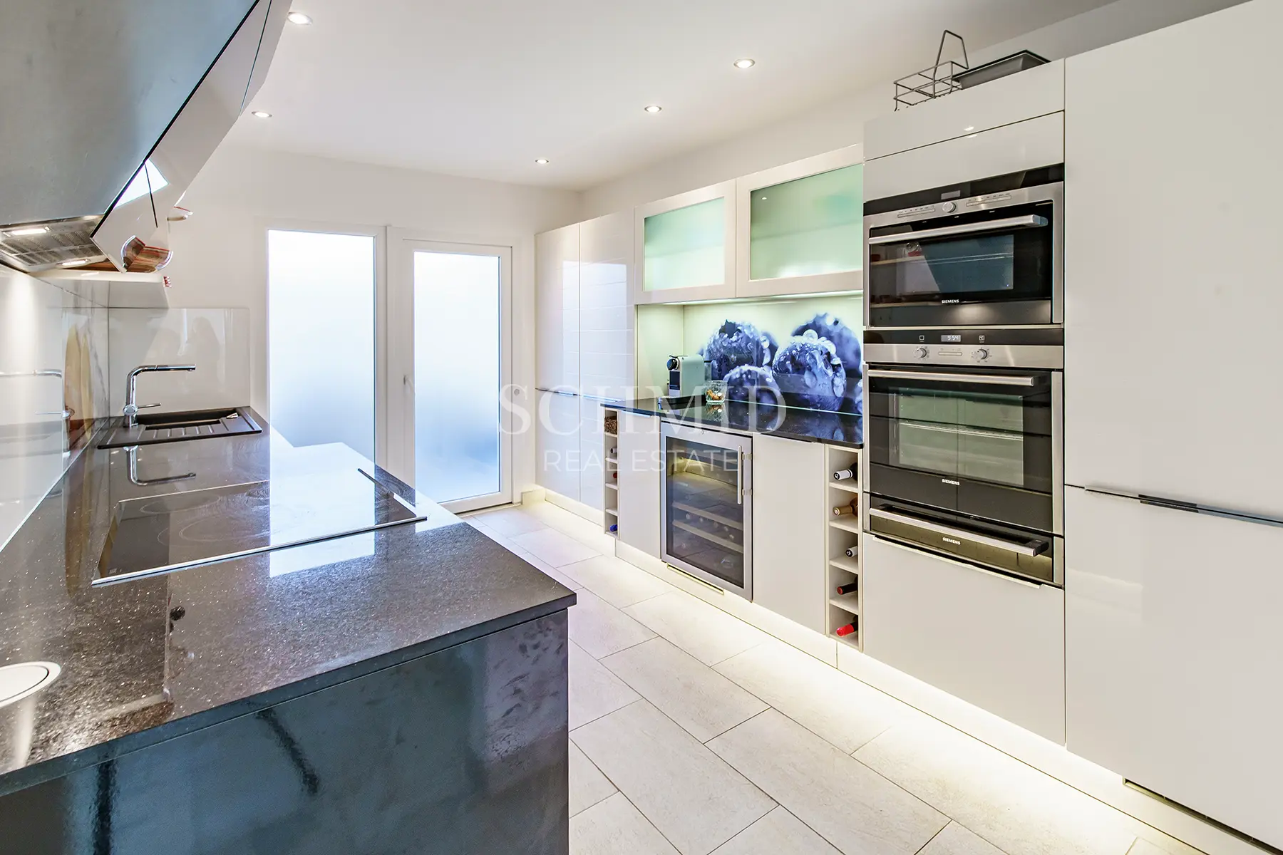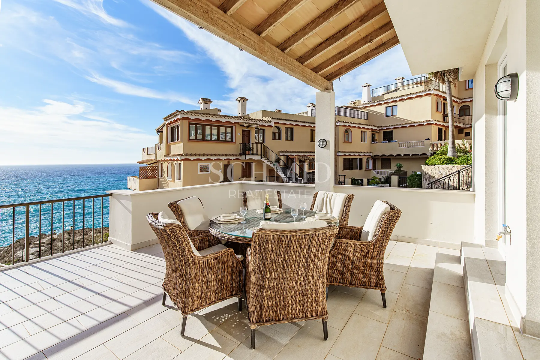 Der offen gestaltete Wohn- und Essbereich beeindruckt durch seine lichtdurchflutete Atmosphäre sowie den unverbaubaren Blick auf das offene Meer. Von hier aus gelangen Sie auf die großzügige, nach Südwesten ausgerichtete Terrasse, die ideale Bedingungen bietet, um die Sonne und den spektakulären Ausblick zu genießen. Die separate Einbauküche ist voll ausgestattet und verfügt unter anderem über einen integrierten Weinkühlschrank.