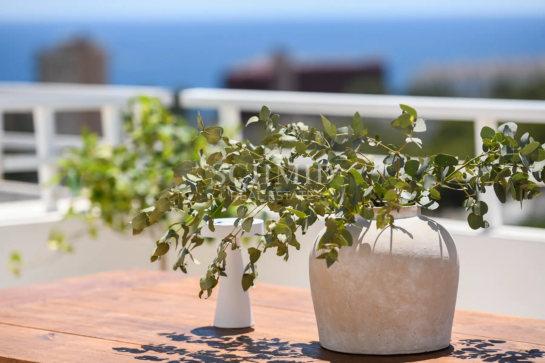 Ein absolutes Highlight dieses Penthauses ist die beeindruckende Dachterrasse auf der dritten Ebene. Hier eröffnet sich ein unvergleichlicher Blick über das Meer. Die großzügige Fläche bietet eine stilvolle Lounge, eine Außenküche sowie einen Essbereich unter freiem Himmel.