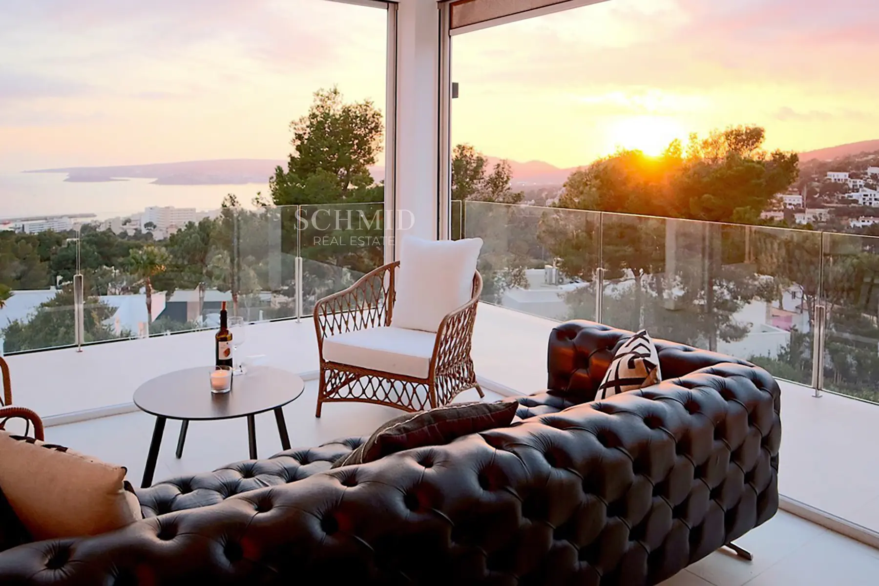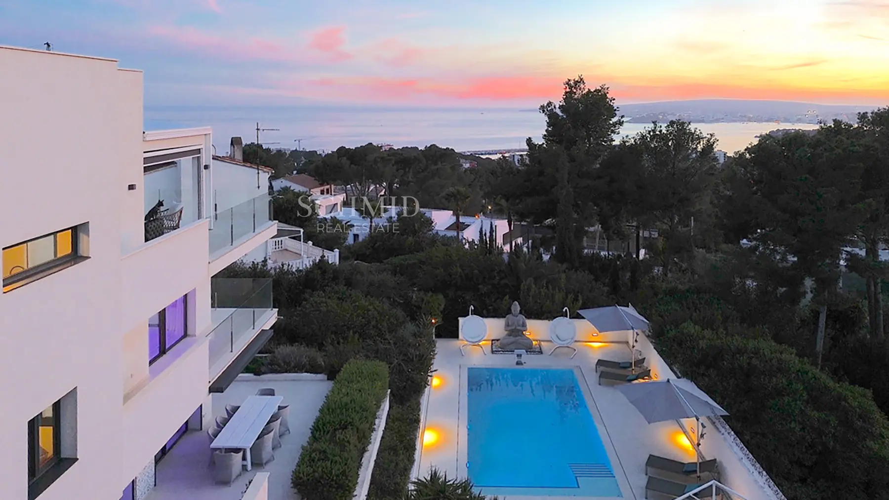 Diese moderne Villa in Portals Nous besticht durch ihren herrlichen Meerblick und ihre exklusive Lage in unmittelbarer Nähe zum Yachthafen Puerto Portals.