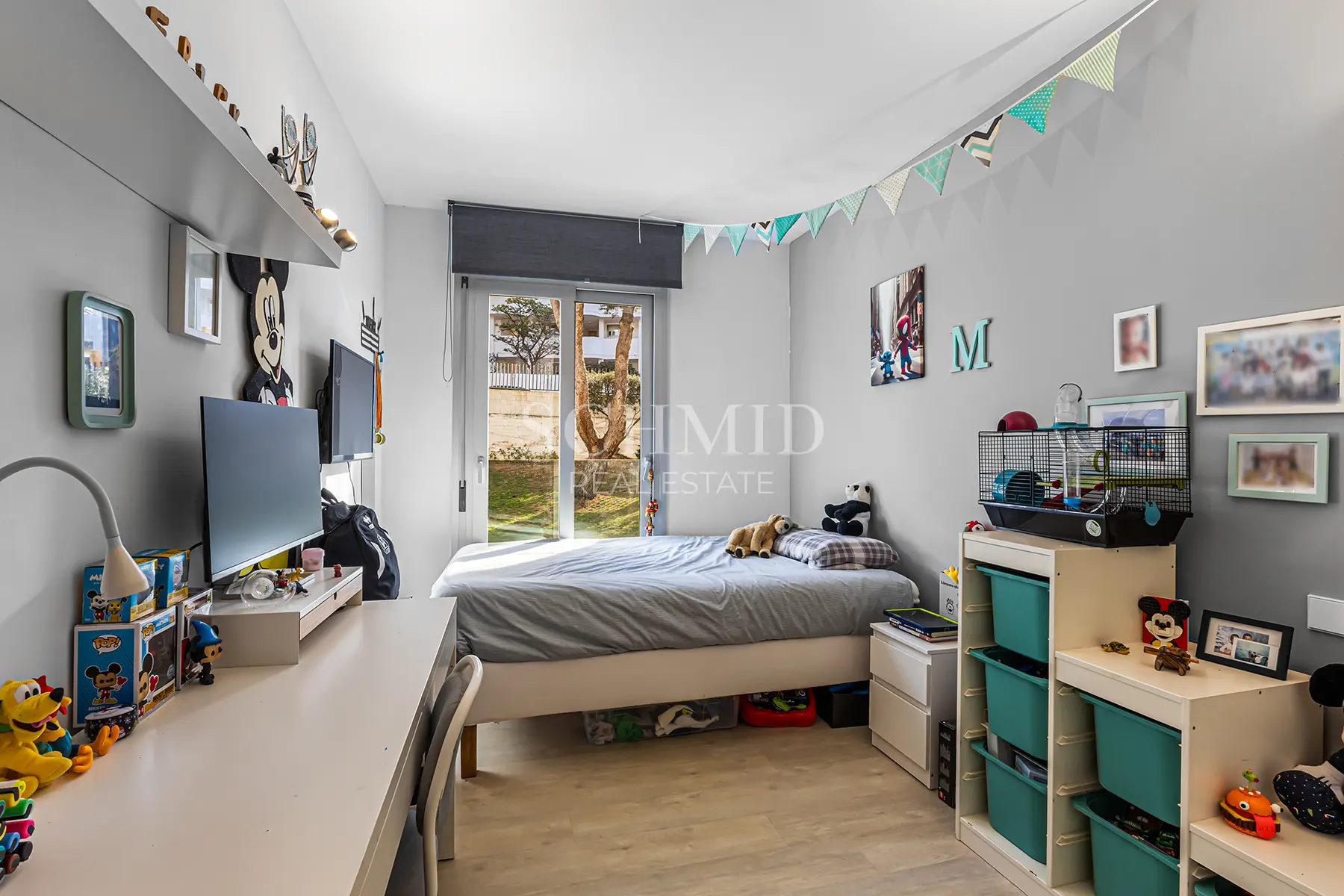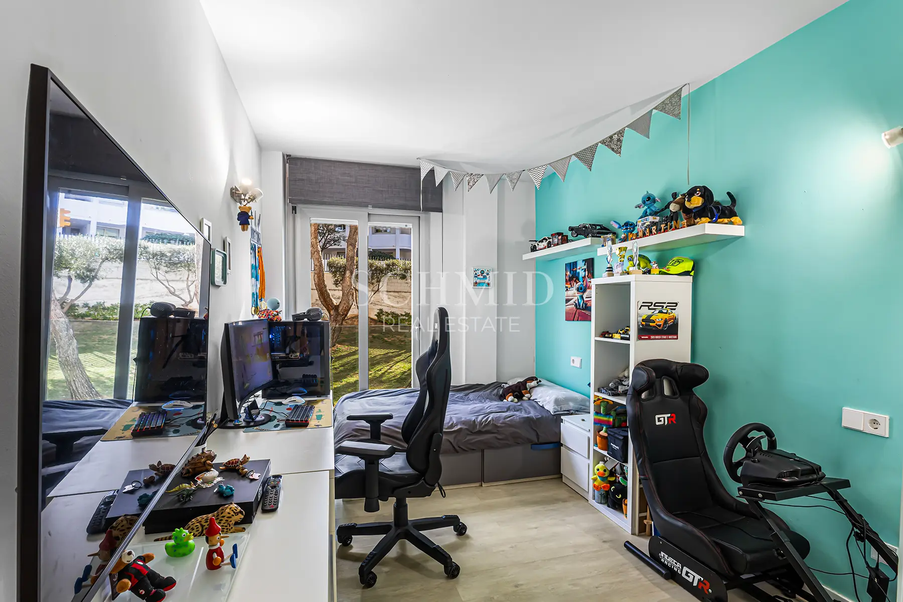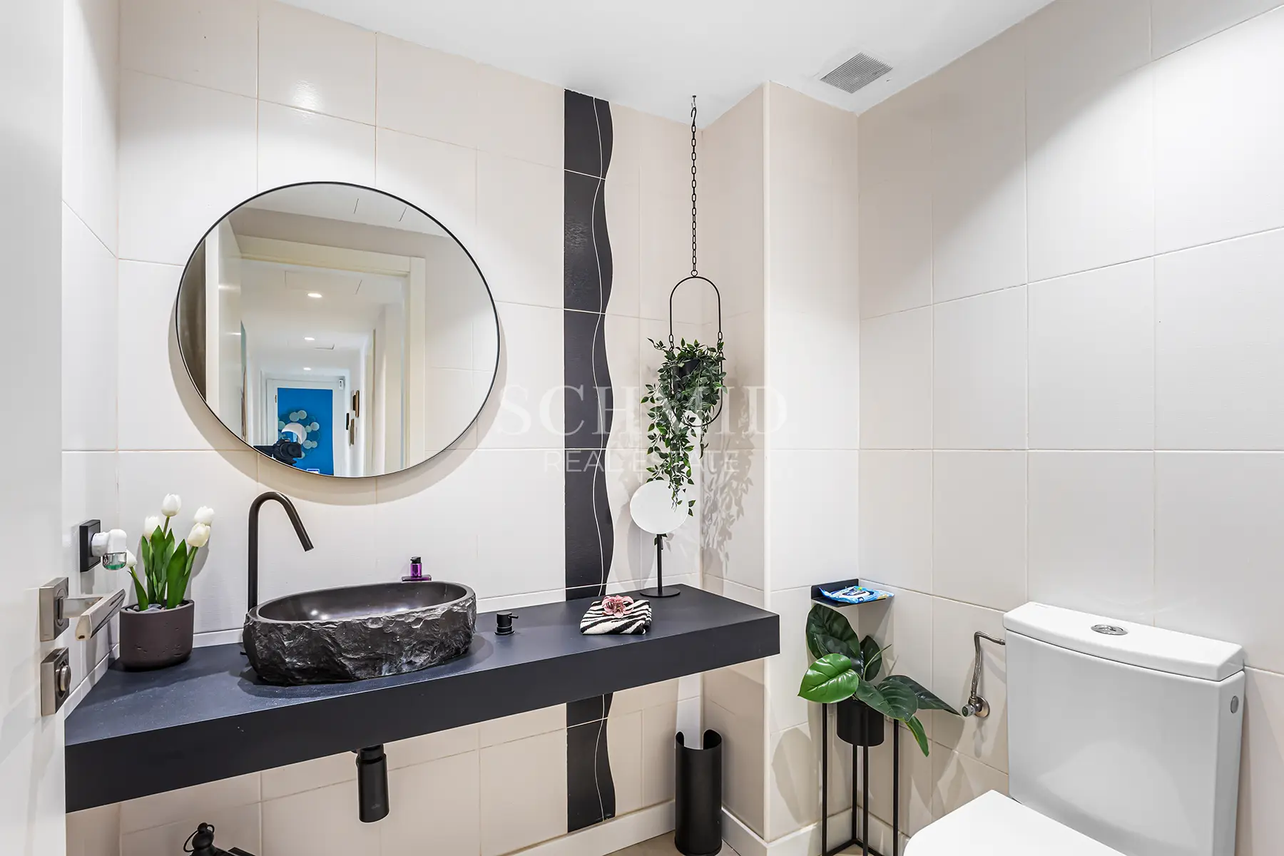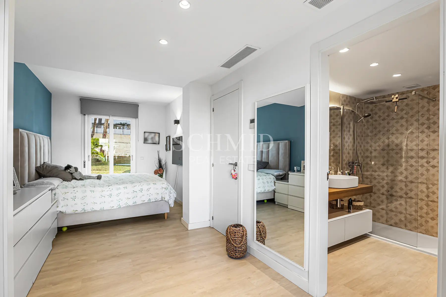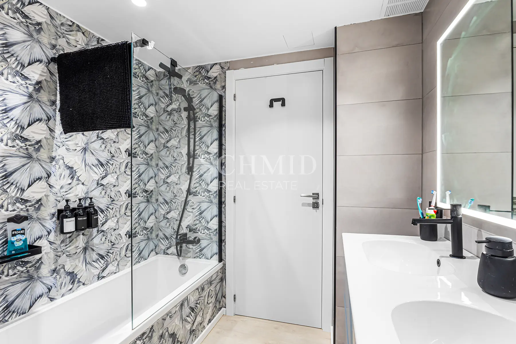 Das Hauptschlafzimmer verfügt über ein Bad en Suite sowie einen direkten Zugang zur Terrasse. Drei weitere Schlafzimmer bieten ausreichend Raum für Familie, Gäste oder ein Homeoffice. Ein zusätzliches Badezimmer sowie ein separates Gäste-WC sorgen für zusätzlichen Komfort. Zwei Tiefgaragenstellplätze sorgen für komfortables und sicheres Parken.