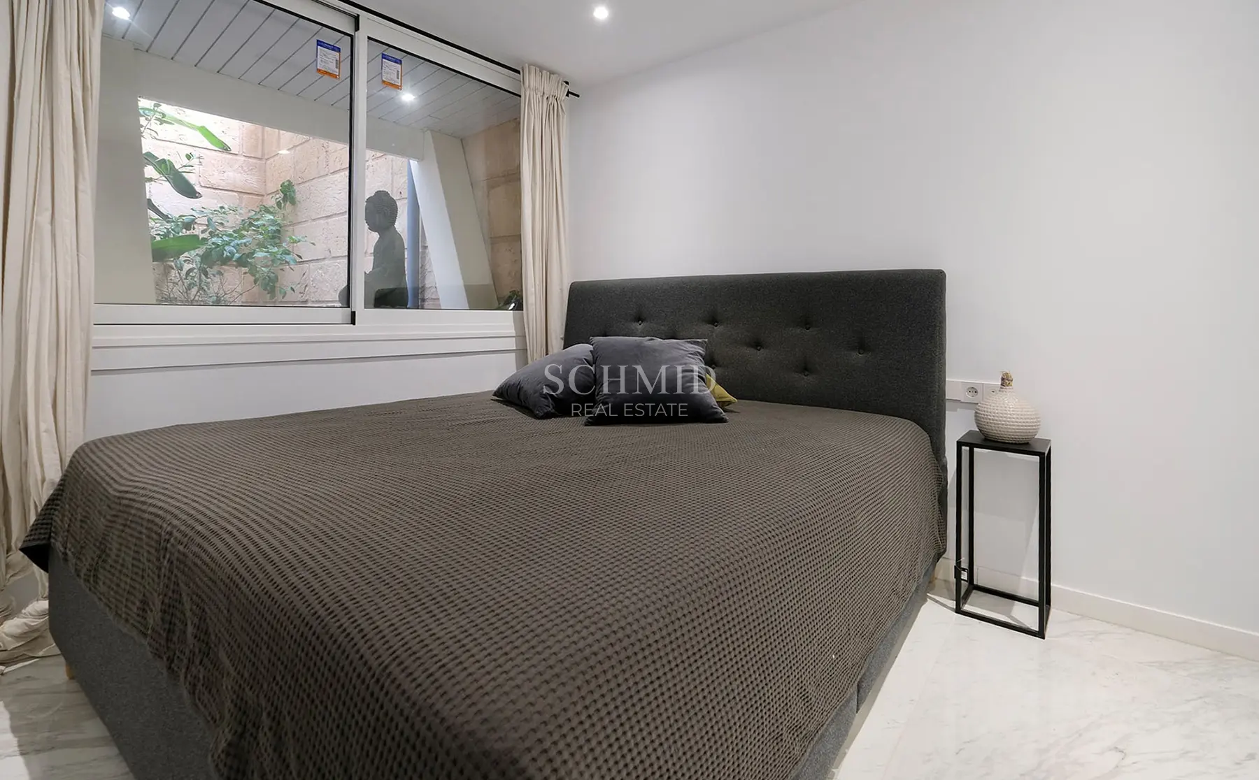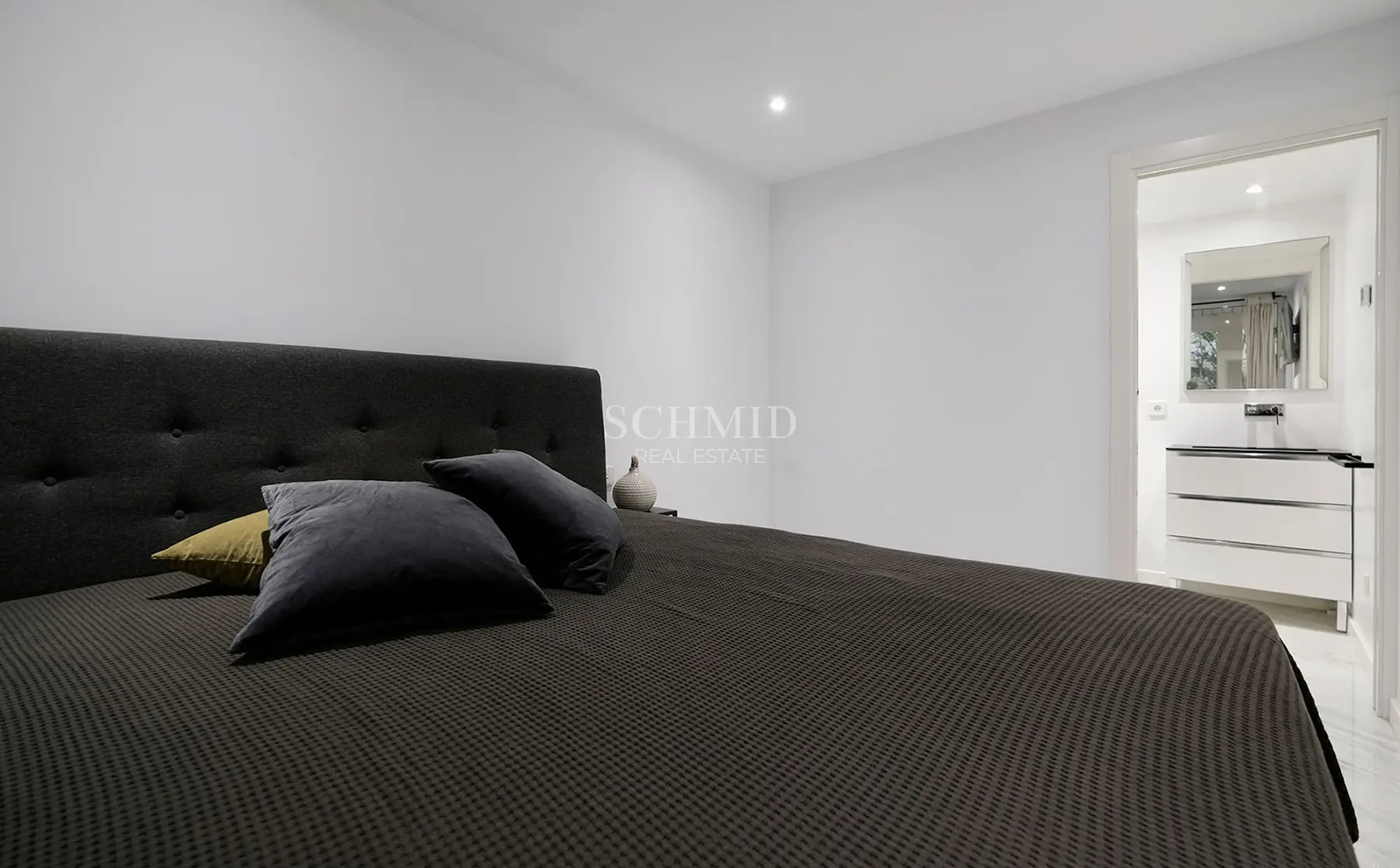 Die Wohnung verfügt über zwei komfortable Schlafzimmer mit praktischen Einbauschränken sowie zwei stilvoll gestaltete Badezimmer, von denen eines en Suite ist. Ein Tiefgaragenstellplatz und ein separater Abstellraum sorgen für zusätzlichen Komfort im Alltag.