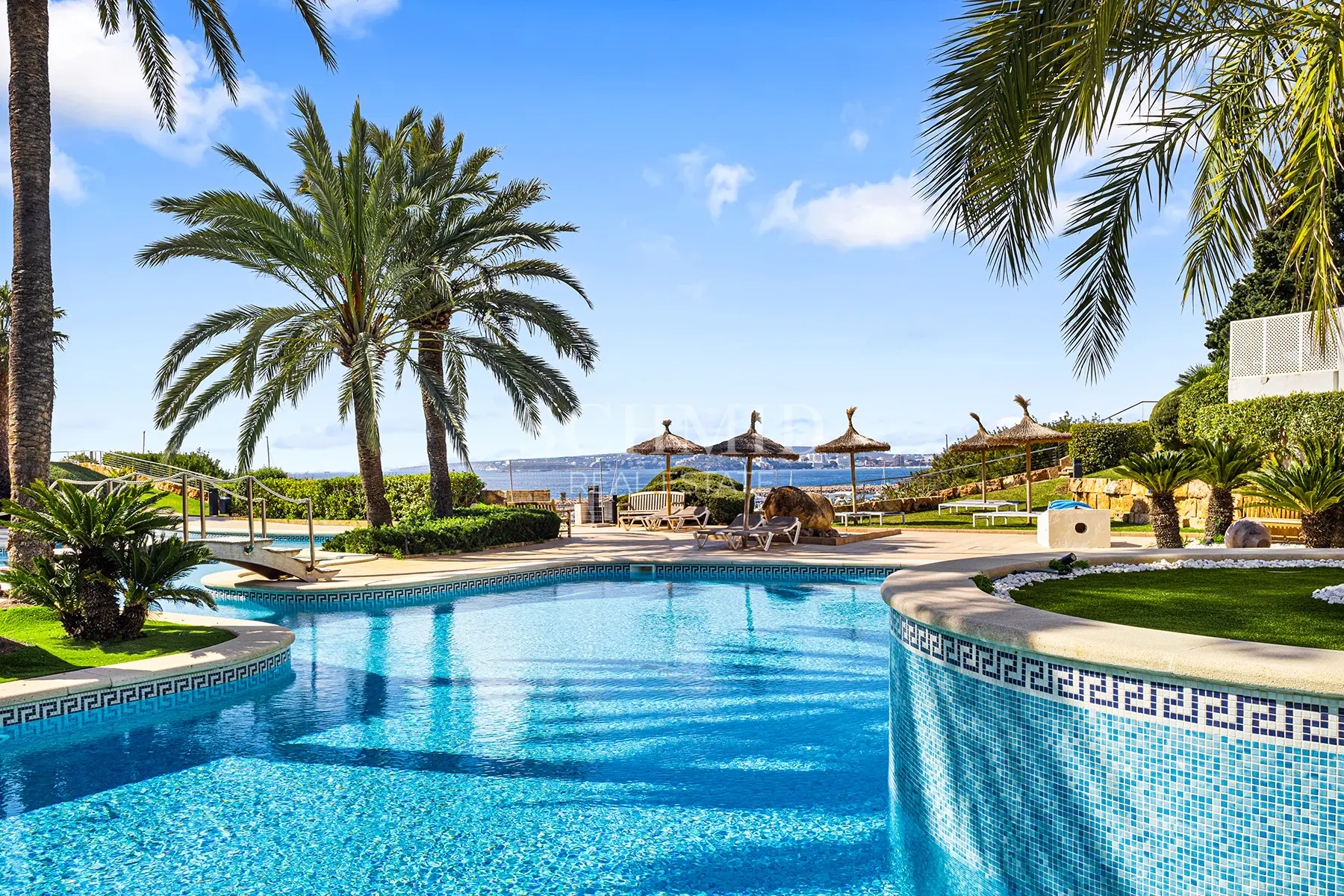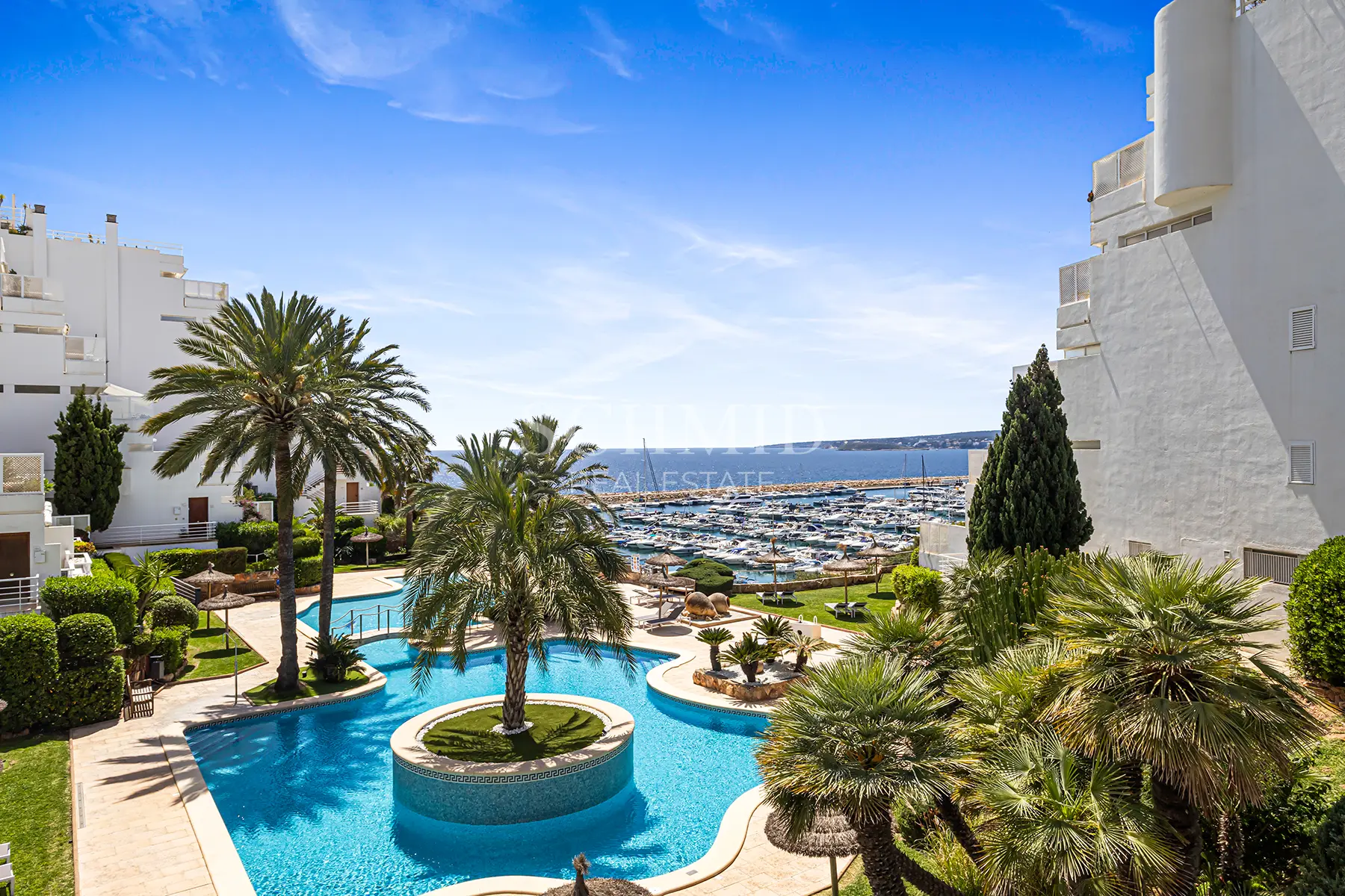 Die gepflegte Wohnanlage „Las Terrazas“ befindet sich in privilegierter Lage direkt am Meer und verfügt über einen direkten Zugang zum Hafen. Darüber hinaus stehen den Bewohnern ein großzügiger Gemeinschaftspool sowie weitläufige Grünflächen zur Verfügung.